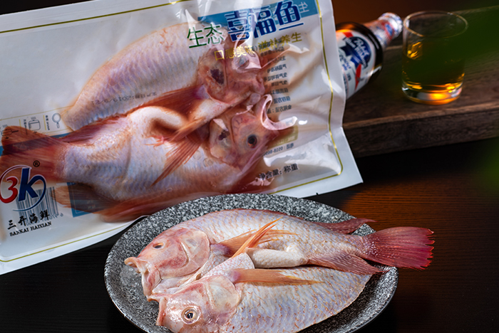 產品介紹:喜福魚肉厚刺少,因攝食水中的綠藻而使其肉富含葉綠素,肉味既鮮嫩爽口,又可養顏潤膚。喜福魚天然紅色,兆顯鴻運。故為喜慶宴席、家人團聚備佳品!